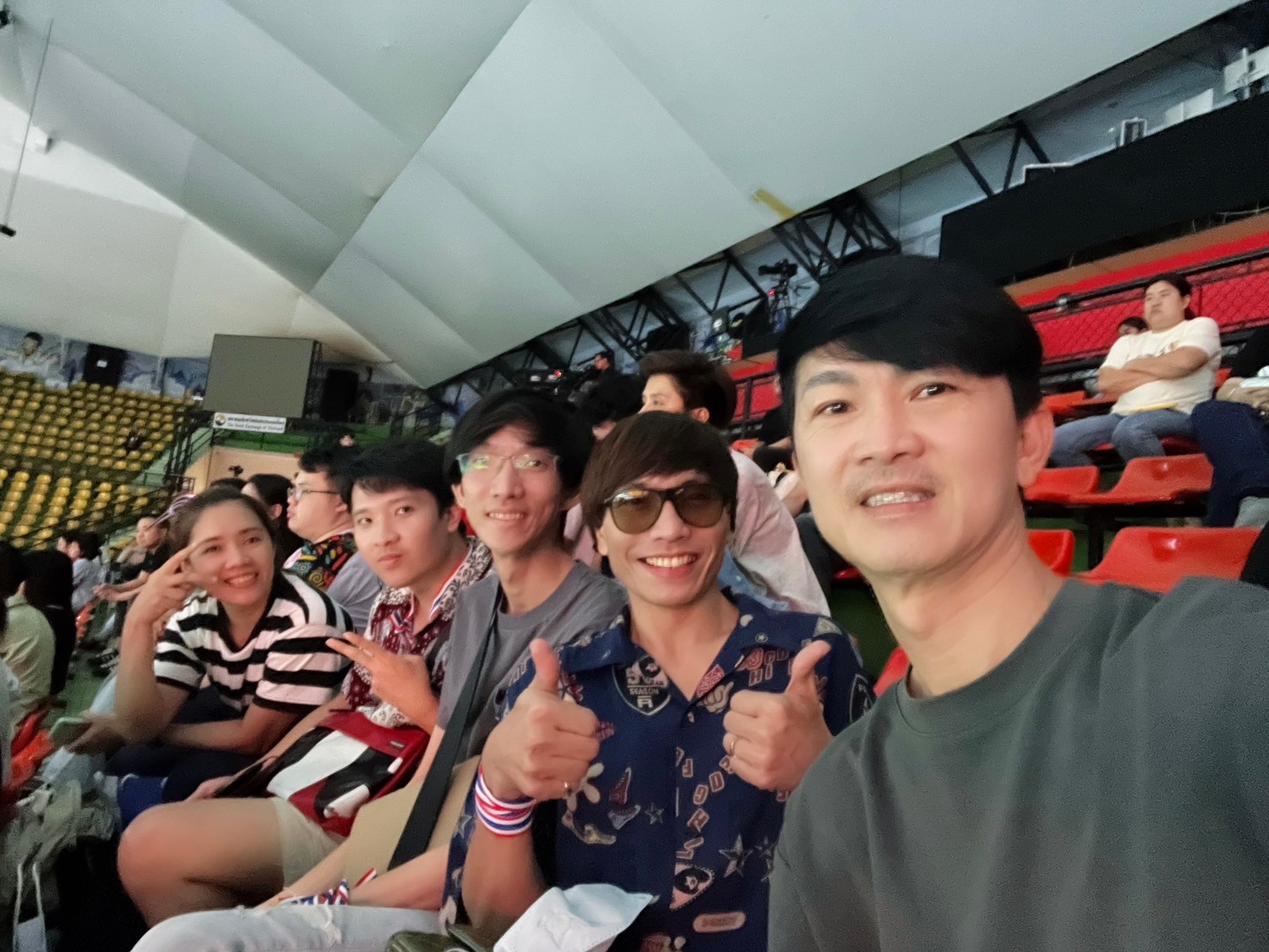 What caught my attention was a small cheering team for Thai players. There were only three of them, but they wore bright-colored clothes and were full of energy. They cheered loudly whenever a Thai player was on the court, which made the atmosphere more lively and enjoyable.